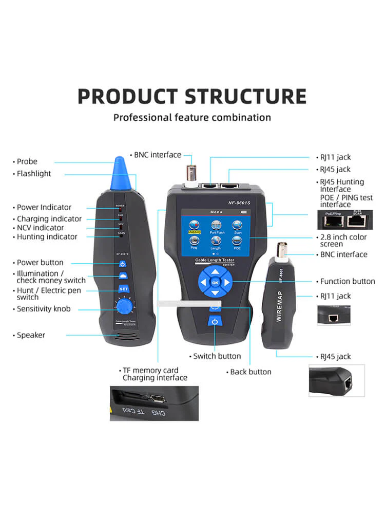 تستر و ردیاب کابل پیشرفته Noyafa NF-8601W – TDR + PoE + Ping - باگارانتی12ماهه